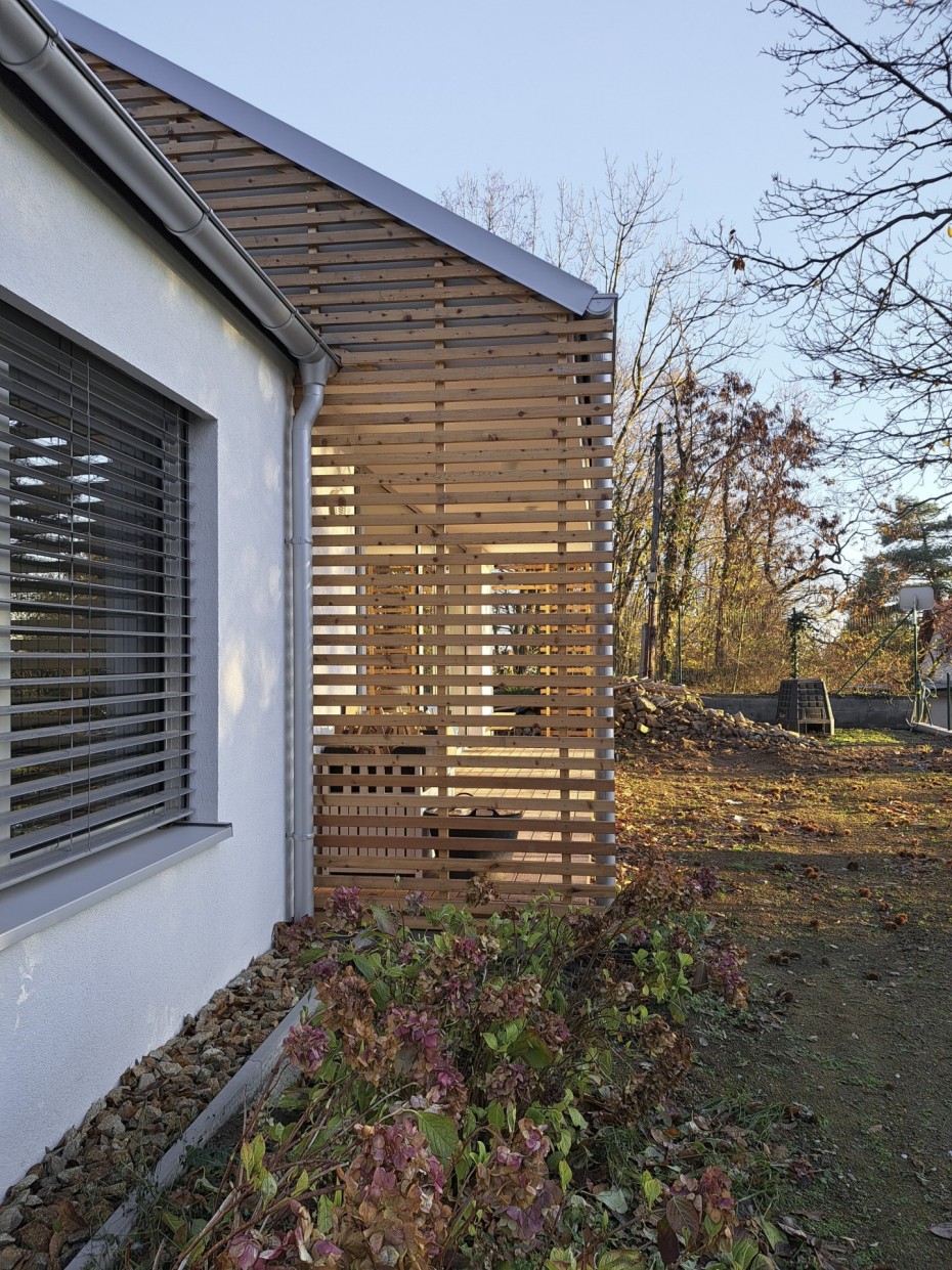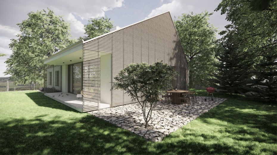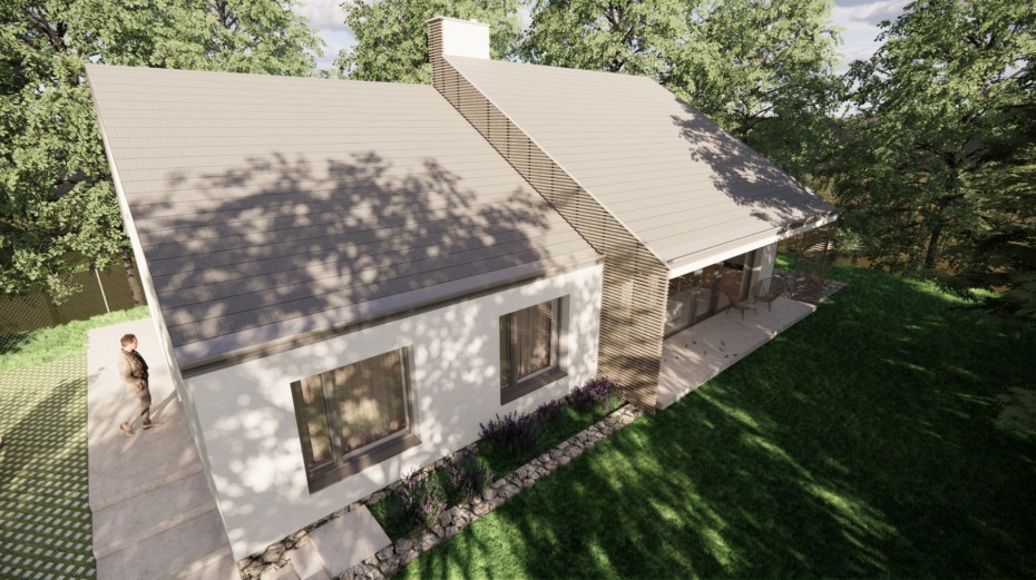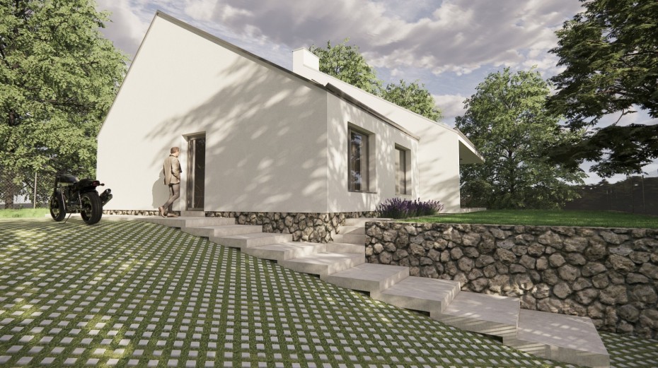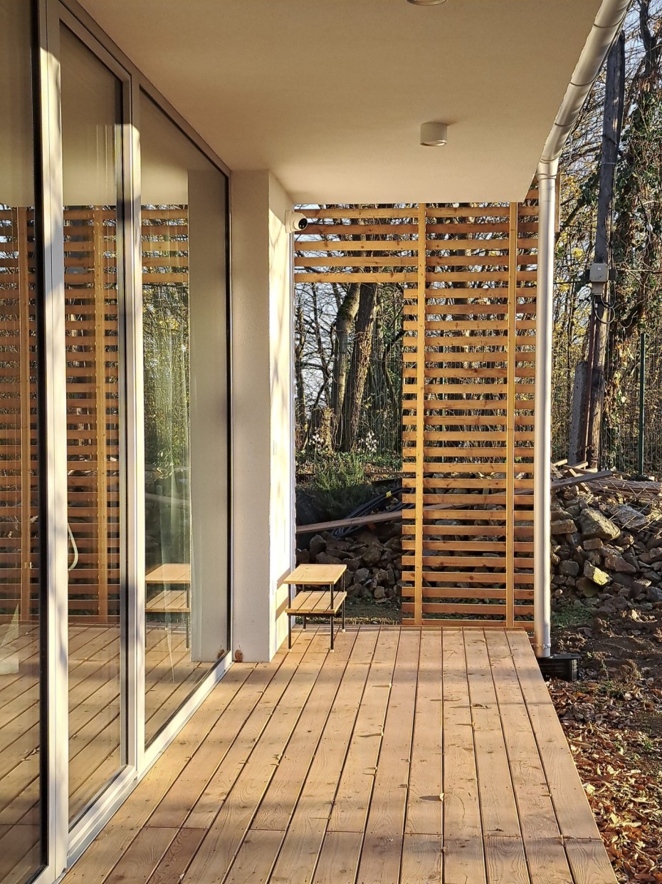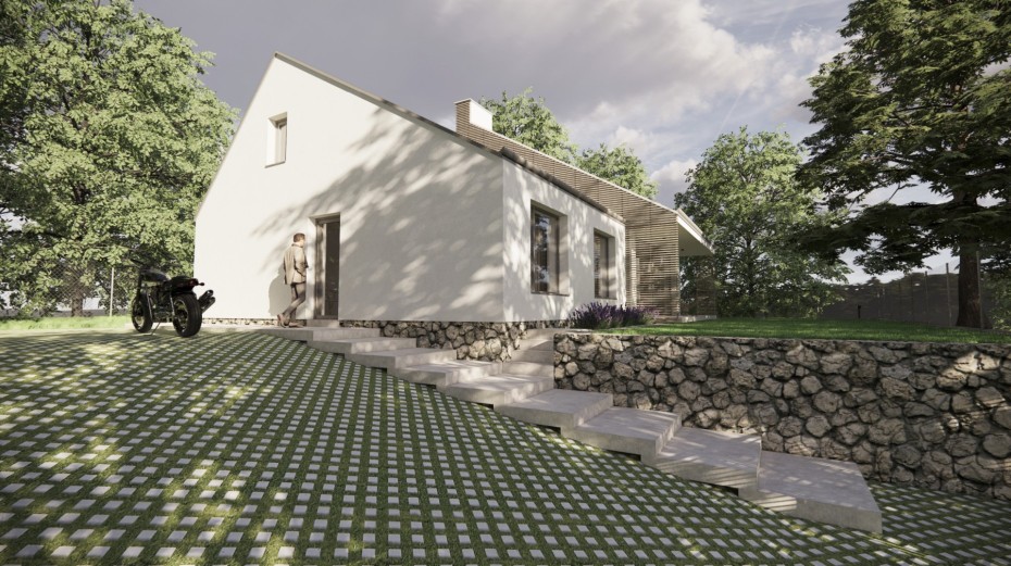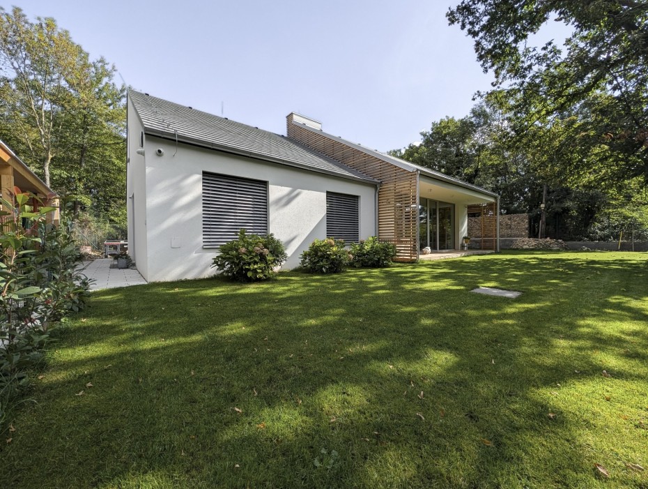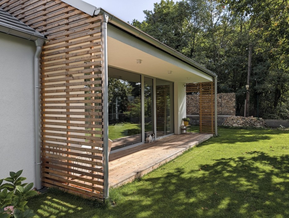 The house in the forest is self-assured because it does not demand to compete for attention in a visual battle with neighboring buildings. It does not need a garden, as it already enjoys a view of the forest. It does not require a tall masonry fence, being located on the edge of an urbanized area. It is not protected from strong sunlight, but summer sun rarely penetrates the trees. It does not even need a balcony, as it is situated on a hill. This approach saved the owner costs both at the entrance and in operation. Last but not least, the old well-known motto applies: “There is beauty in simplicity.”