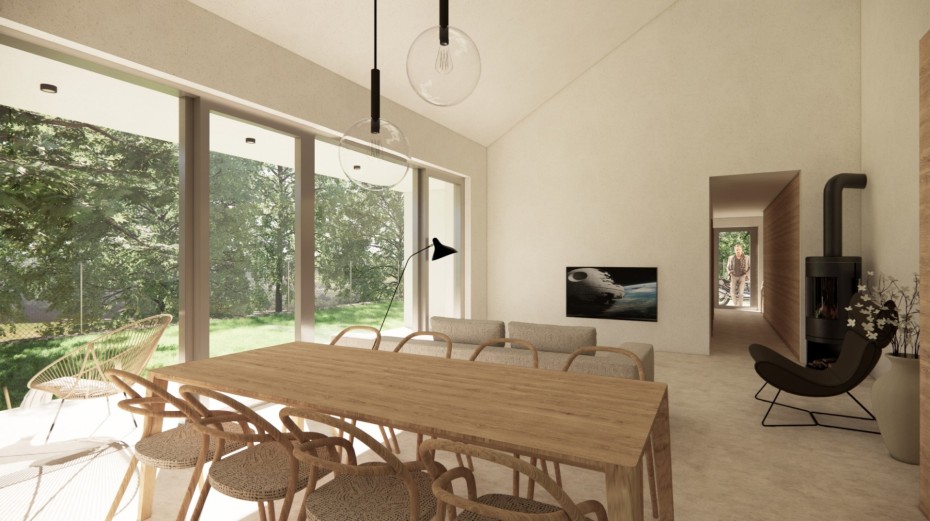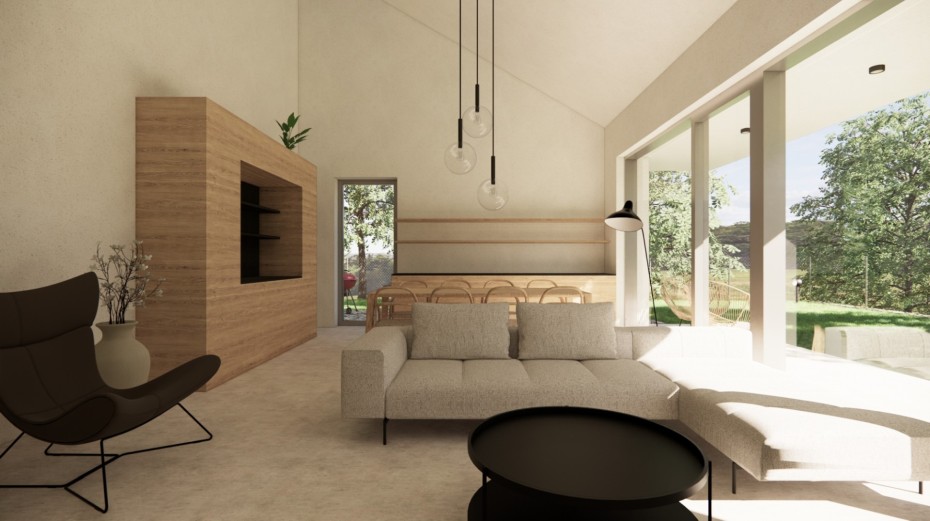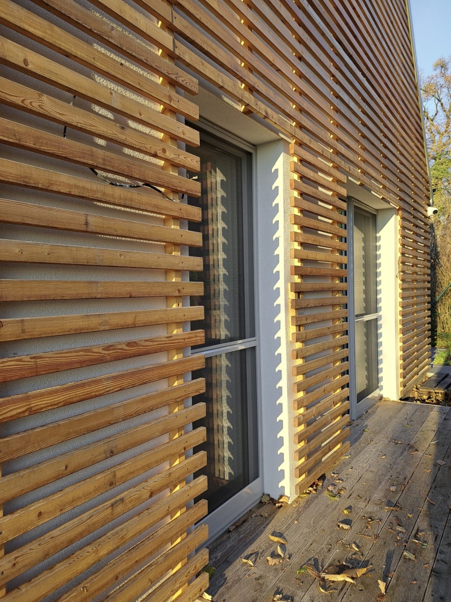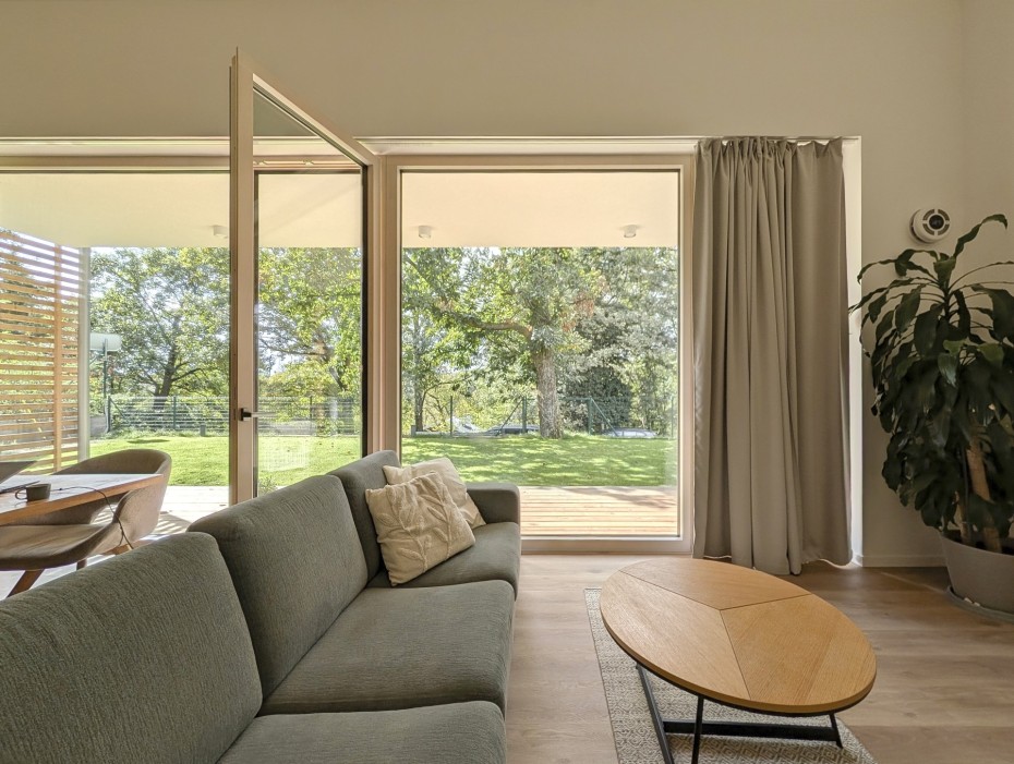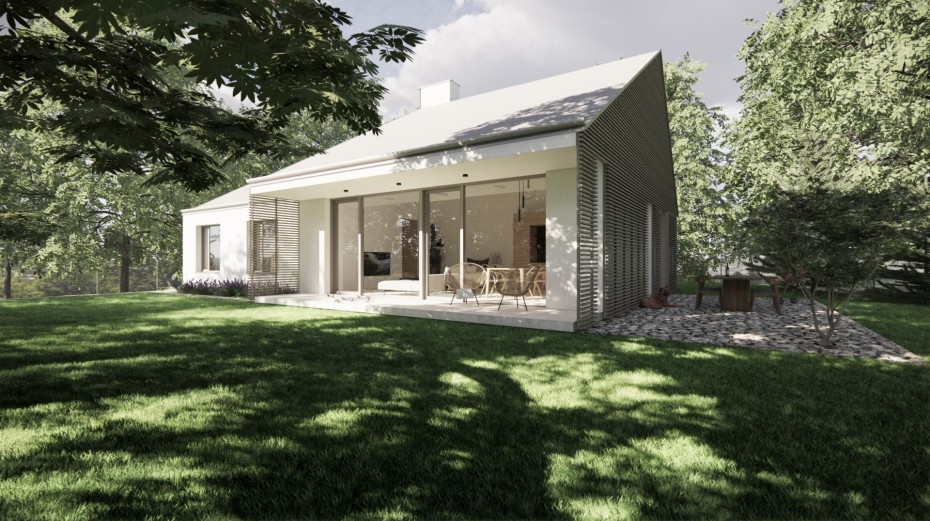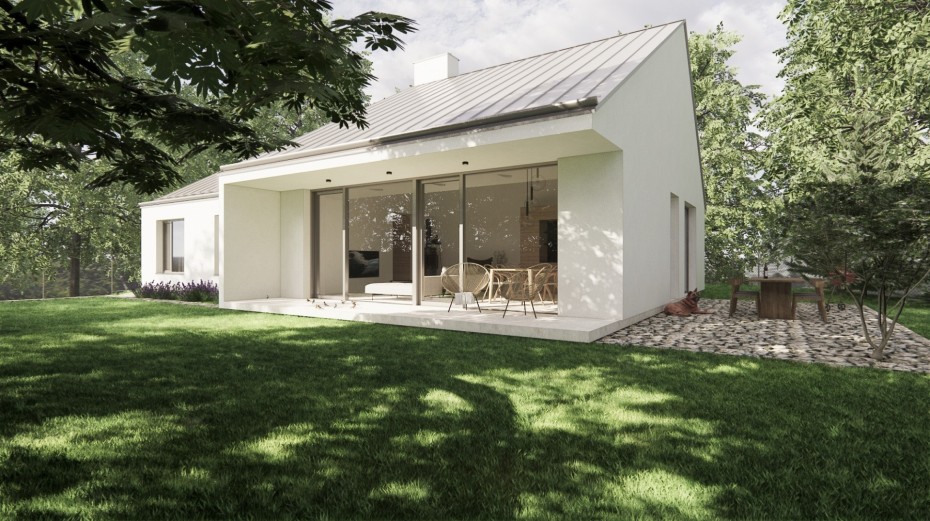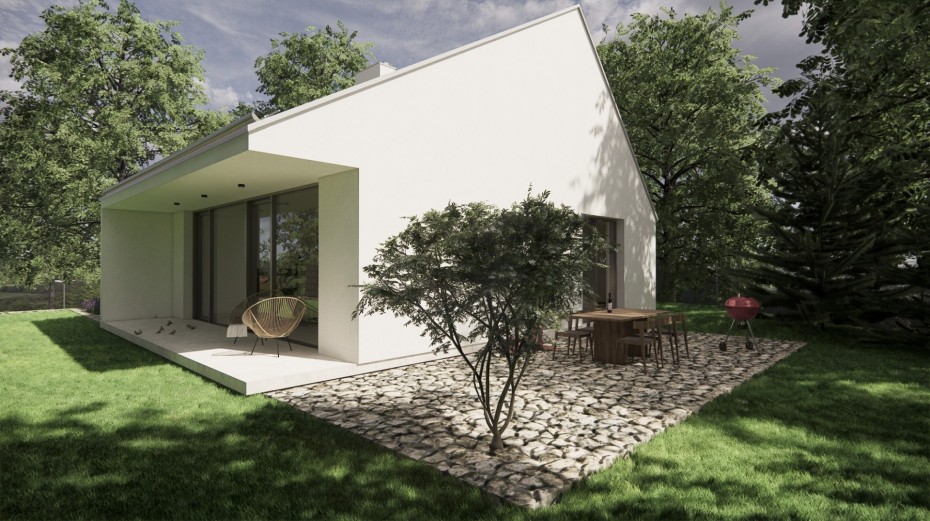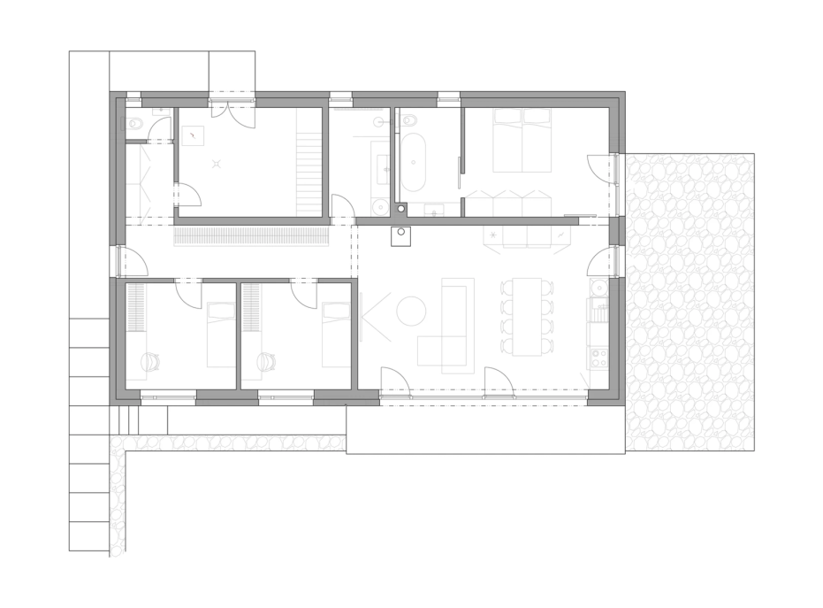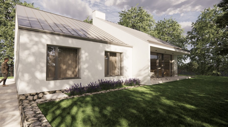 The house in the forest is self-assured because it does not demand to compete for attention in a visual battle with neighboring buildings. It does not need a garden, as it already enjoys a view of the forest. It does not require a tall masonry fence, being located on the edge of an urbanized area. It is not protected from strong sunlight, but summer sun rarely penetrates the trees. It does not even need a balcony, as it is situated on a hill. This approach saved the owner costs both at the entrance and in operation. Last but not least, the old well-known motto applies: “There is beauty in simplicity.”