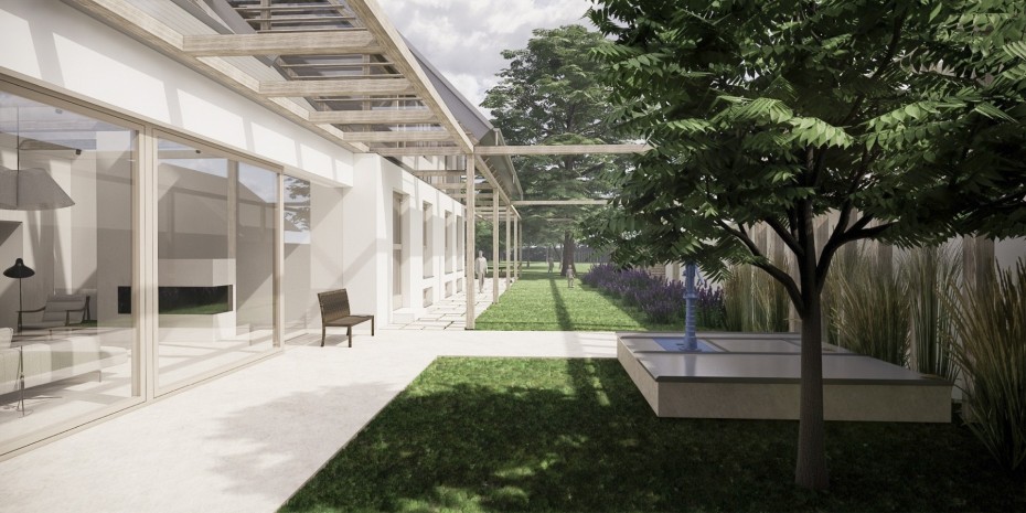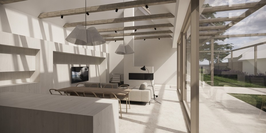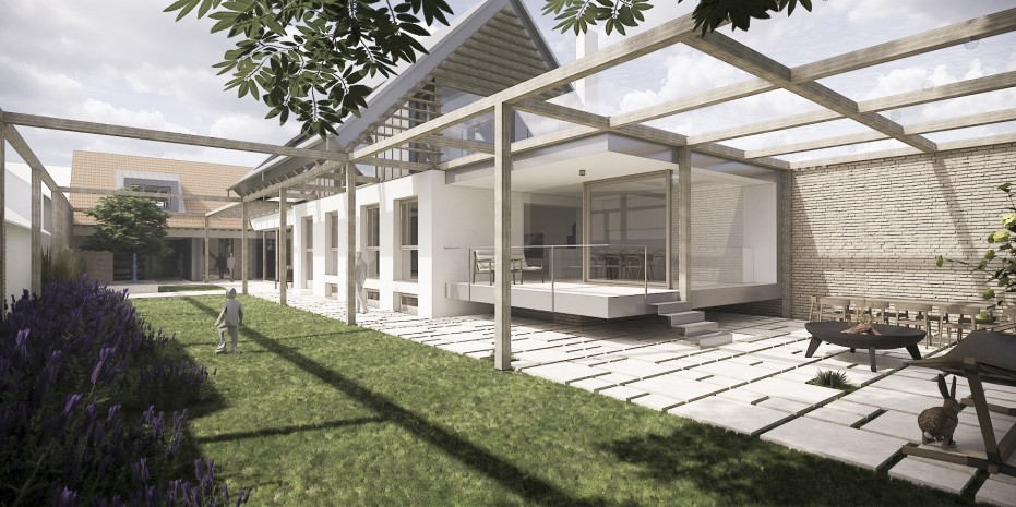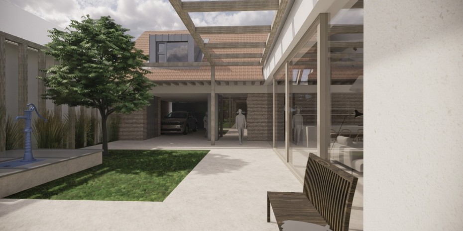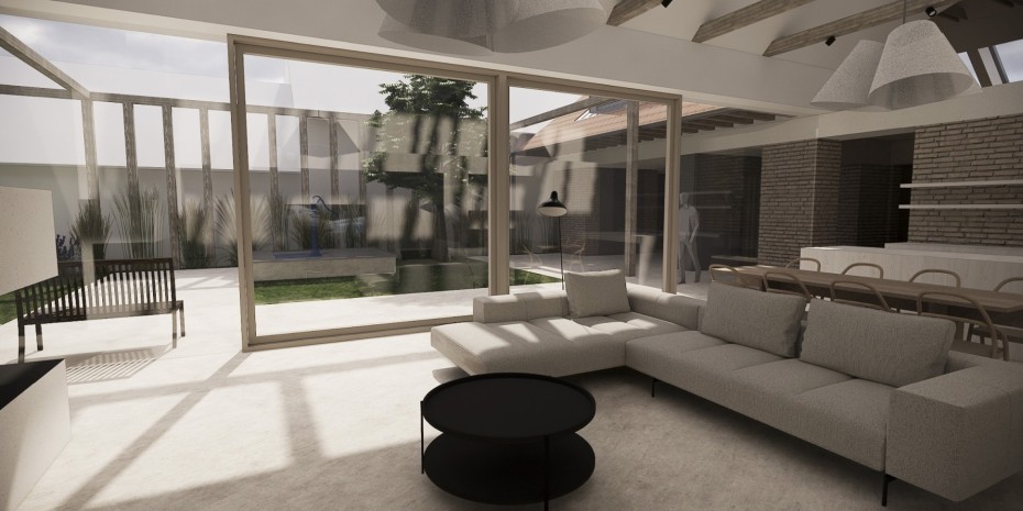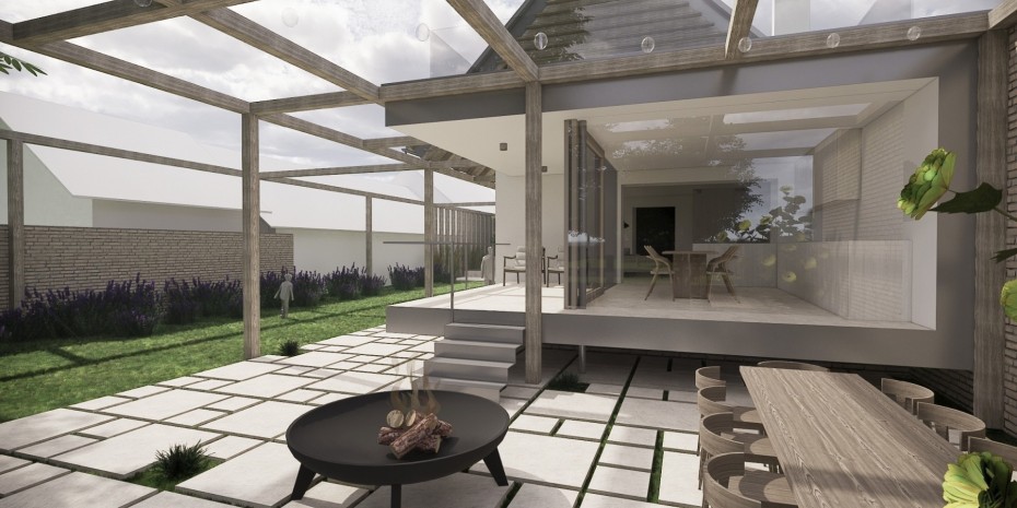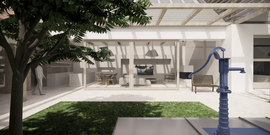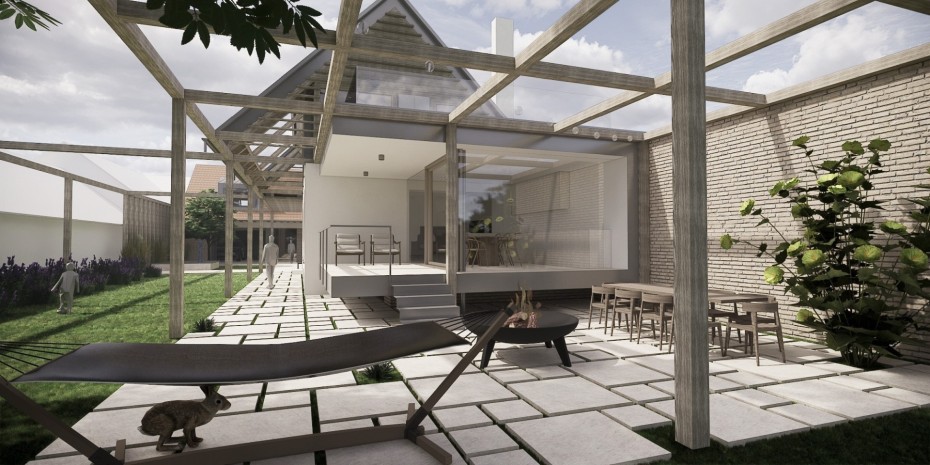 Renovation of a terraced house into a duplex creates a space for small community activities.