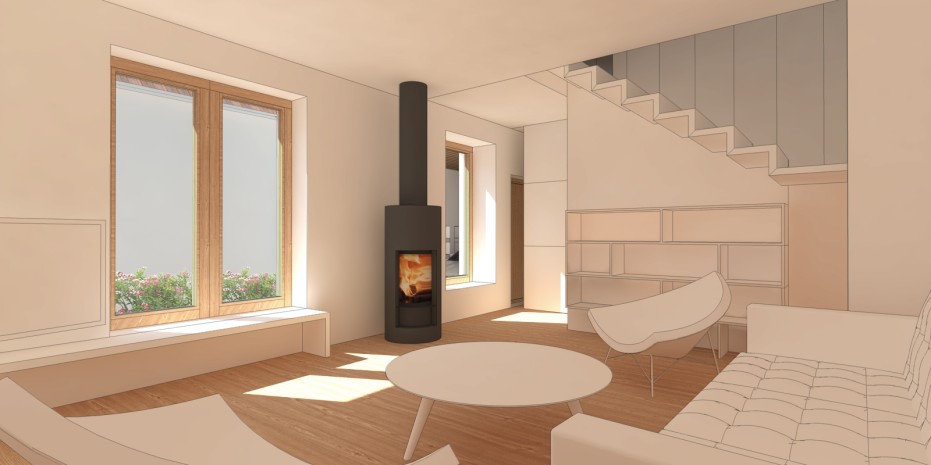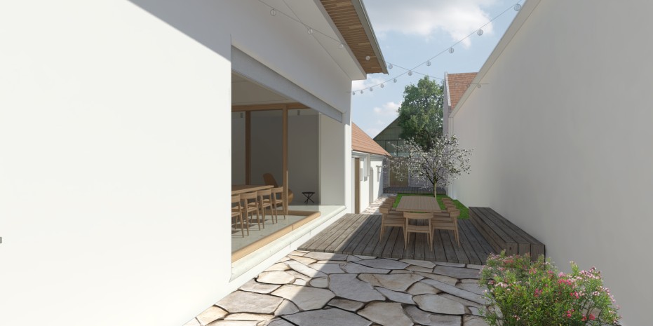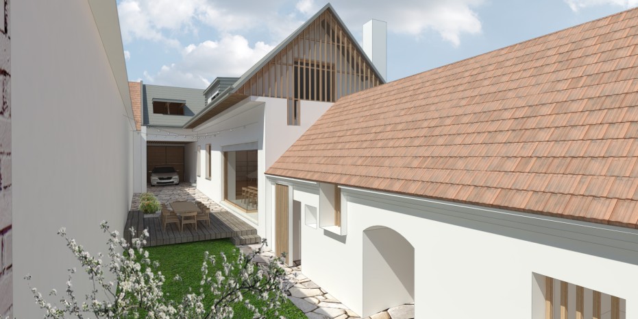 Our task was to address the reconstruction of a house with attic conversion, sensitively contributing to the strong row architecture of the street, and to create a fully functional space on a narrow plot. The highlight of the project was a new barn located behind the house’s plot.