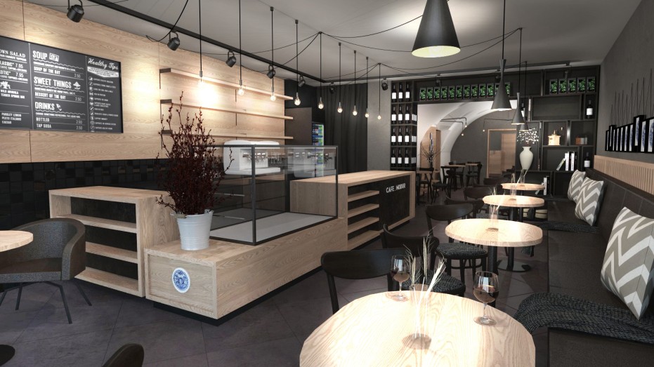 Záver roka 2016 sme venovali návrhu a projektu novej kaviarne pre dobrého známeho. Po dôkladnom preskúmaní viacerých variantov sme dospeli k riešeniu, ktoré spája klasické, moderné aj tradičné modranské prvky. Hlavnou ideou priestoru bola útulná a nevtieravá atmosféra, v duchu ktorej sme navrhli všetky typové aj atypické komponenty.